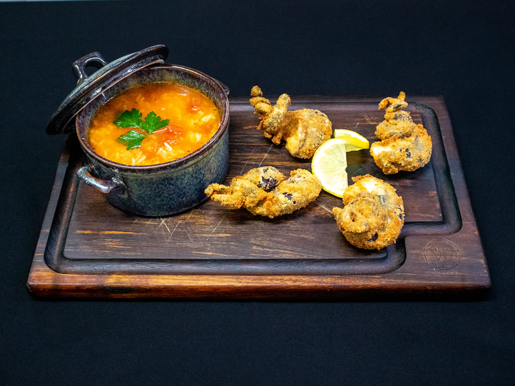 Sopa 2,20€ Entradas Tempura de Gambas 9,90€ Brás de Alheira de Caça 9,90€ Polvo à Déjà Vu com pão tostado 9,90€ Fogaça Recheada 4 pax 16,50€ (por encomenda) Pastas e Arrozes Linguini do Reino cogumelos shitake, toucinho fumado, queijo São Jorge, ovo e nata 11,90€ Arrozoto de Tomate assado e Queijo S.Jorge DOP 12 meses 11,90€ Arroz Caldoso de Tomate com Gambas ao Alho 14,90€ Peixes Lulinhas Panadas c/Arroz Caldoso Tomate ☆ Especialidade 14,90€ Polvo à Lagareiro 24,90€ Lombo Bacalhau Gratinado 16,90€ Tentáculos de Polvo Panados com arroz Caldoso de Tomate ☆ Especialidade 18,90€ Lombo de Bacalhau com Crosta de Broa de Avintes ☆ Especialidade 16,90€ Carnes Feirasinha a francesinha na Fogaça ☆ Especialidade 16,50€ Bife à Leão ☆ Especialidade 16,50€ Bife de Frango com arroz branco e salada mista 12,90€ Francesinha tradicional com ovo e batata frita 13,50€ Bife na Frigideira 13,90€ Naco de Vazia Grelhado | 2pax com Batata Frita ☆ Especialidade 32,90€